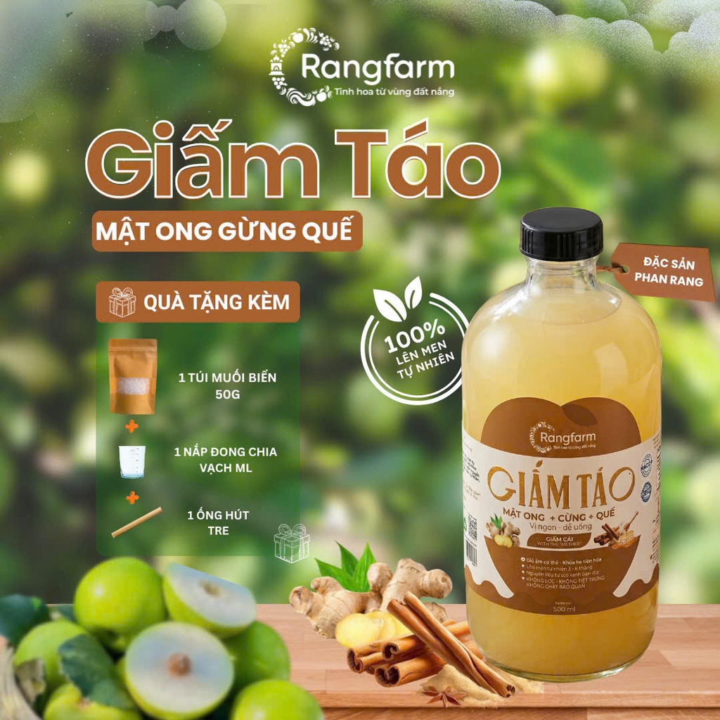 Giấm Táo, Giấm Táo Nghệ Mật Ong, Lên Men Tự Nhiên Rangfarm 120ml & 500ml - món quà sức khỏe từ thiên nhiên, mang đến cho bạn cuộc sống khỏe mạnh và an nhiên!