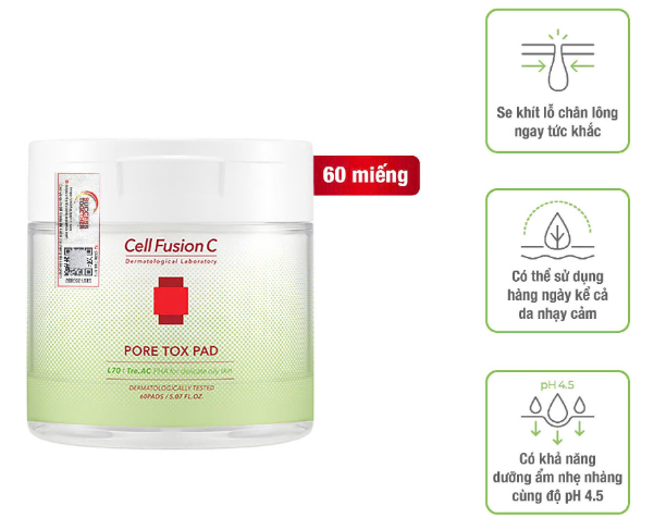 Toner Cotton Pad Làm Sạch Sâu & Se Khít Lỗ Chân Lông - Chứa PHA Cell Fusion C Pore Tox Pad (60 miếng) Hàn Quốc